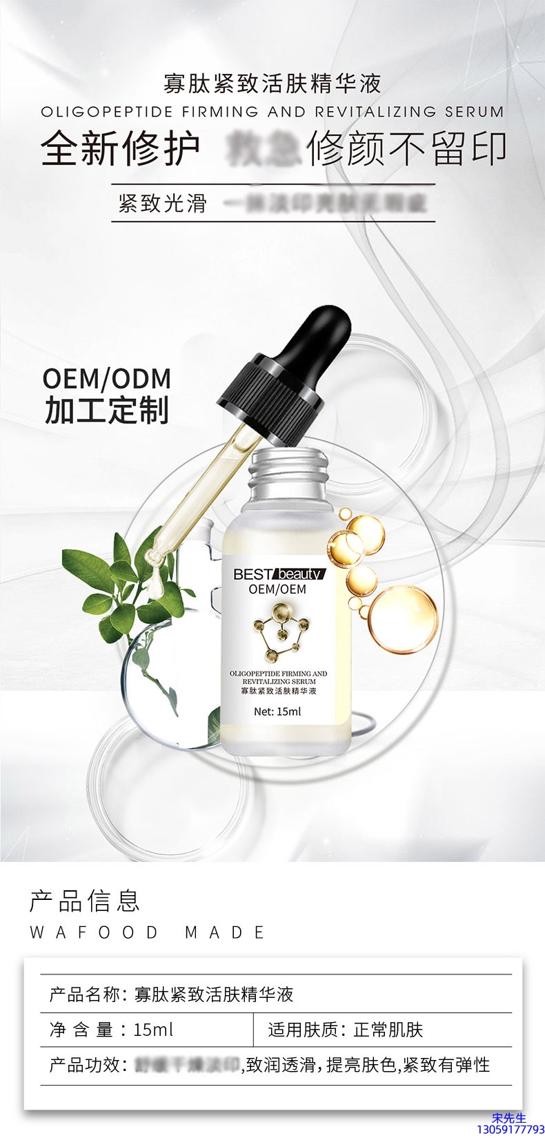 寡肽精华液OEM ODM代加工 紧致、祛痘、抗初老 OEM定制贴牌