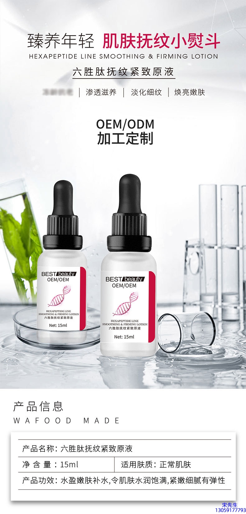 六胜肽抚纹紧致原液OEM ODM代加工